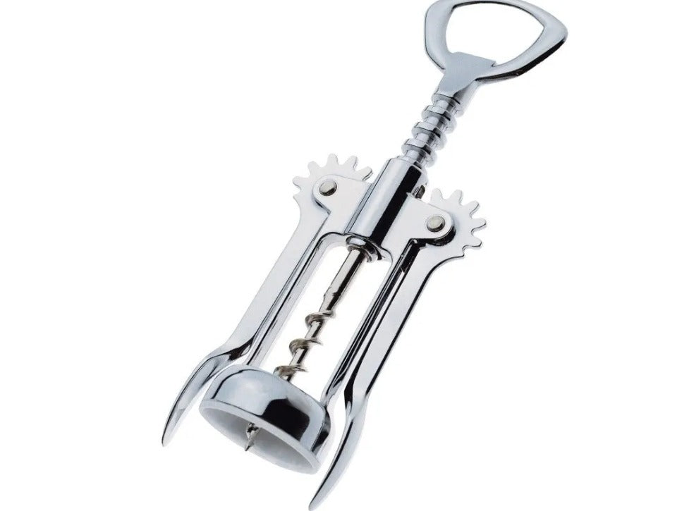 Destapa vinos multifuncional de metal.